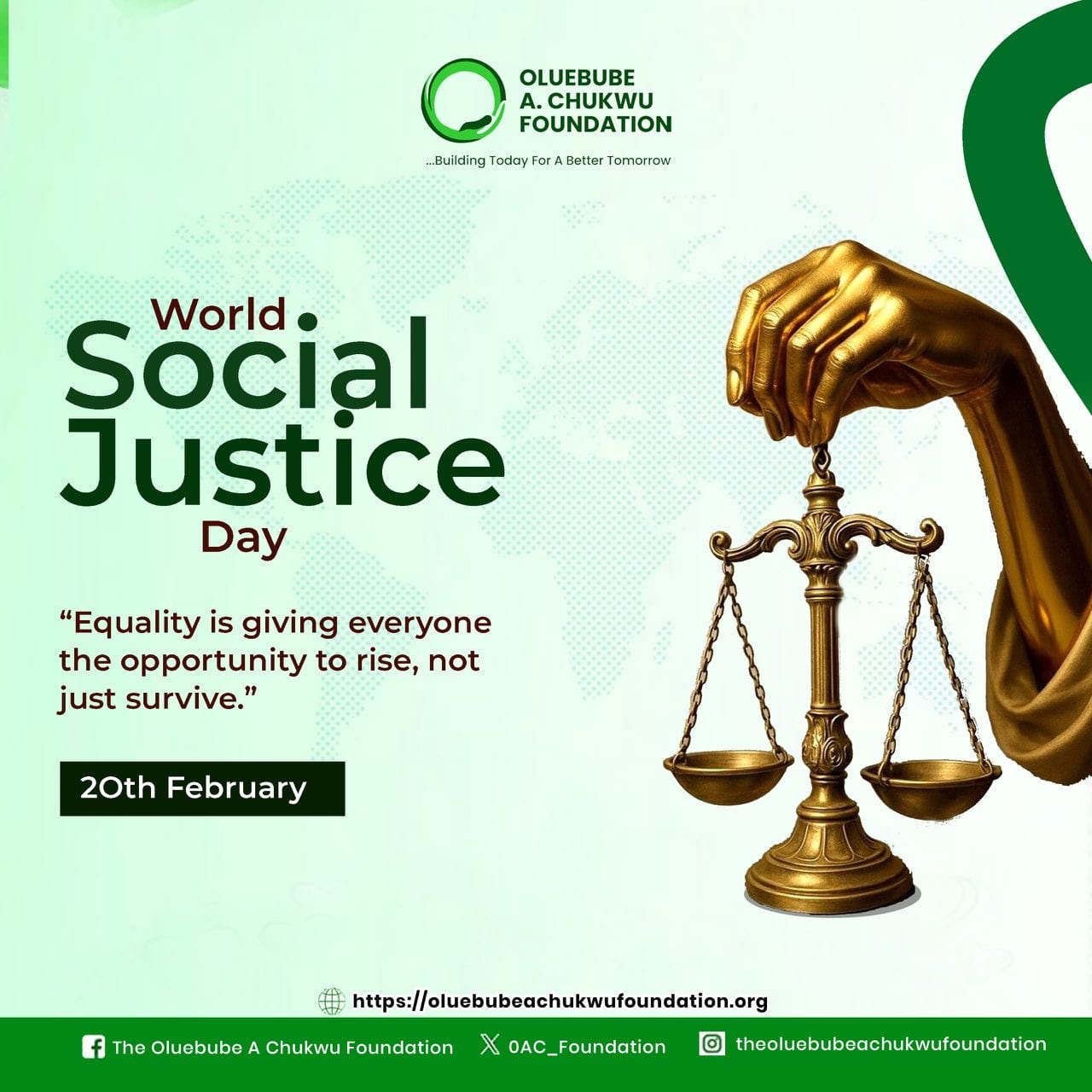 About Us Founded on the birthday of our founder, Dr. Oluebube A. Chukwu, the Oluebube A. Chukwu Foundation is a beacon of hope and a catalyst for positive change. Our foundation is a vehicle for strategic philanthropy, with a mission to make a positive impact on society by addressing the needs of individuals and communities.
