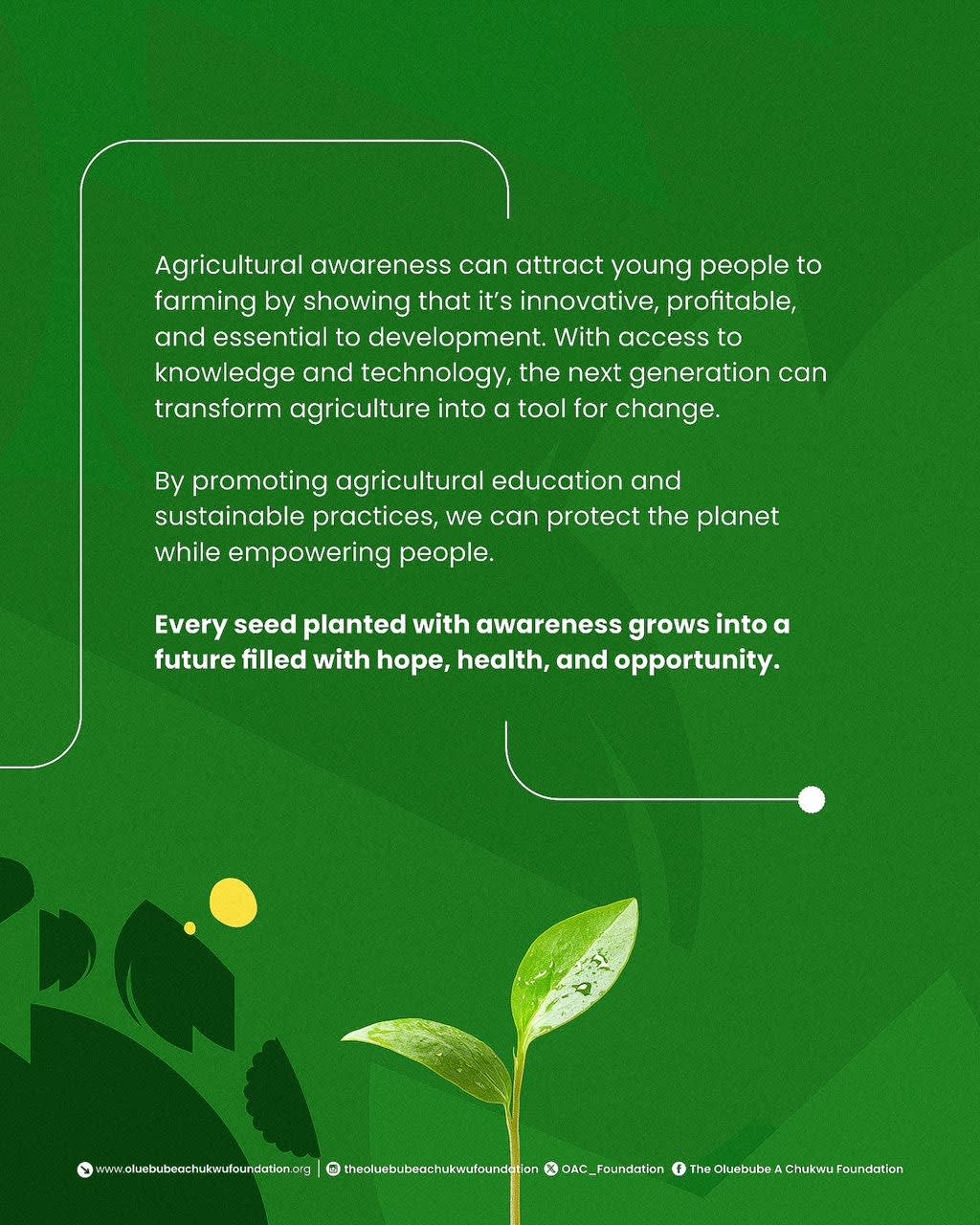 Agricultural awareness can attract young people to farming by showing that it’s innovative, profitable, and essential to development. With access to knowledge and technology, the next generation can transform agriculture into a tool for change.