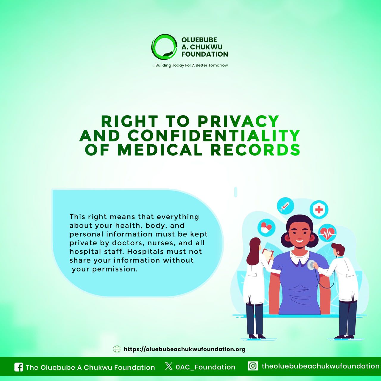 The Nigerian Patients’ Bill of Rights ensures you're treated fairly and with dignity throughout your healthcare journey. Knowing your rights protects you from abuse and empowers you to make informed decisions.